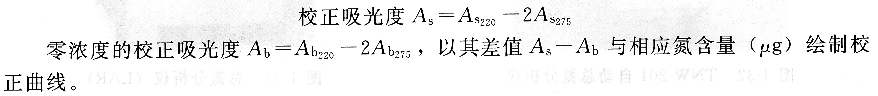 在紫外分光光度计上,以无氨水作参比,用10ram石英比色皿分别在220nm及275nm波长处测定吸光度。用校正的吸光度绘制校准曲线。