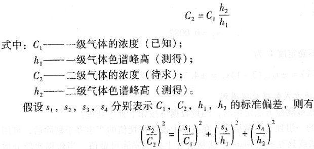 这就是说二级气体浓度的标准偏差是由一级气体浓度的标准偏差以及峰高h1和峰高h2的标准偏差合成而得到。