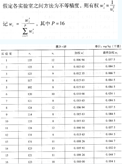 由16个实验室用不同方法对土壤中铬进行测定,测定数据见表3-15。表中xi为每个实验室测定的平均值,ui为该实验室所采用方法测定的标准不确定度。