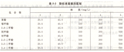 准确称取一定量的各种酚,制备1g/L各种酚的储备液(以三氯甲烷为溶剂)。将储备液按表5―3比例,用三氯甲烷配制成酚的混合标准系列。