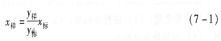 y样,x样――分别表示被测样品在测量仪器上的测量值和计算出的被测样品的量值。