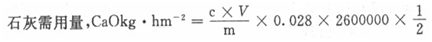 石灰需要量以中和每公顷耕层土壤(200~260万kg)需要用氧化钙(即生石灰,CaO)的kg数计算。但实验室测定条件与田间实际情况的差异,施石灰的计算方法为: