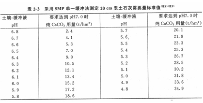 根据侧得的土壤-缓冲液pH,由表2-3查出石灰需要量并记录。