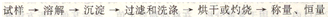 例如样品中硫酸盐含量的测定。利用Ba2+与SO42-反应析出BaSO4沉淀,经过滤、洗涤、烘干和灼烧,最后称量BaSO4沉淀质量测SO42-含量。