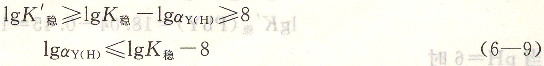 利用式(6―9)可以估算金属离子在上述条件下,用EDTA滴定所允许的最小pH。
