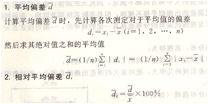 甲、乙两组数据的平均偏差相同,但可以明显看出甲组数据较为分散,因其中有两个较大的偏差(标有*者),因此用平均偏差反映不出这两组数据的优劣。但是,如果用标准偏差表示,甲组数据的标准偏差明显比乙组数据的大,因而甲组数据的精密度较低。