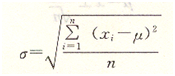 标准偏差又称均方根偏差。当测定次数趋于无穷大时,总体标准偏差σ表达式为: