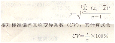 在一般的分析工作中,只作有限次测定,根据几率可以得出有限测定次数n时的标准偏差s表达式为: