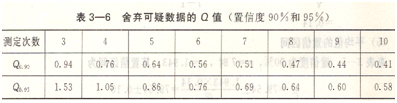 (5)根据测定次数n和要求的置信度(如95%),查表3―6,得出Q0.95。
