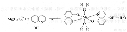 例如,Mg2+和8-羟基喹啉的反应为: