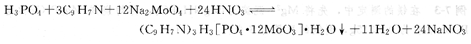 如测定磷酸二氢铵、磷、酸氢二铵中的有效磷,采用磷钼酸喹啉重量法。磷酸盐用酸分解后,可能生成偏磷酸HPO3或次磷酸H3PO2等,故在沉淀前要用硝酸处理,使之全部转变为正磷酸H3PO4。磷酸在酸性溶液中(7%~10%HNOa)与钼酸钠和喹啉作用,形成磷钼酸喹啉沉淀: