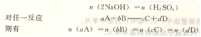 按上面的化学方程式的计量关系,NaOH的计量数为2,基本单元定为2NaOH;H2SO4的计量数为1,基本单元定为H2SO4,由于2NaOH的基本单元数与H2SO4的基本单元数相等,则两物质的物质的量相等(即等物质的量规则),即: