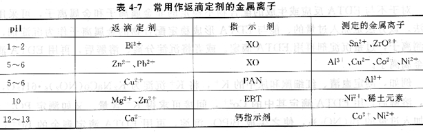 表列出了一些常用作返滴定剂的金属离子。