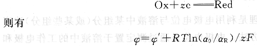 Nernst方程式表示了电极电位与溶液中对应离子活度之间的关系,对于一个氧化还原体系: