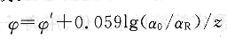 式中,ψ’是标准电极电位;R是摩尔气体常数;T是热力学温度;F是Faraday常数;z是电极反应过程中转移的电子数;a0和aR是氧化态和还原态的活度。在250C时,上述方程式可写成: