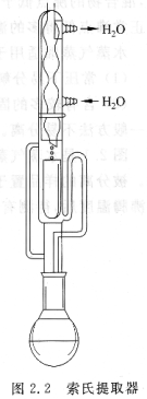 固-液萃取也分间歇式和连续式两种。间歇式可以在一般玻璃容器内进行。萃取前样品要粉碎,萃取时可以加热回流,也可以搅拌和超声振荡。连续固-液萃取一般在脂肪提取器(也称索氏提取器)中进行。索氏提取器如图2.2所示。