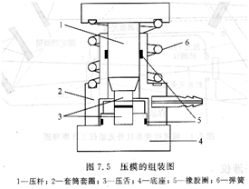 压模的构造如图7.5所示,它是由压杆和压舌组成。压舌的直径为13mm,两个压舌的表面光洁度很高,以保证压出的薄片表面光滑。因此,使用时要注意样品的粒度、湿度和硬度,以免损伤压舌表面的光洁度。