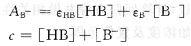 如果溶液的pH值在pKa附近,HB和B一在溶液中共存,此时的吸光度AB-为: