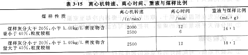 煤粉浮沉是指小于0.5mm粒级煤的浮沉,又称为煤泥浮涉了测定粒度小于0.5mm煤样各密度级的产率和质量,研究其率。与煤炭浮沉试验方法不同的是,煤粉粒度很细,在氯化锌慢,一般为了提高分层速度都在离心机内进行试验,该试验方}速、离心时间、重液与煤样之比例参照表3―15。