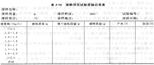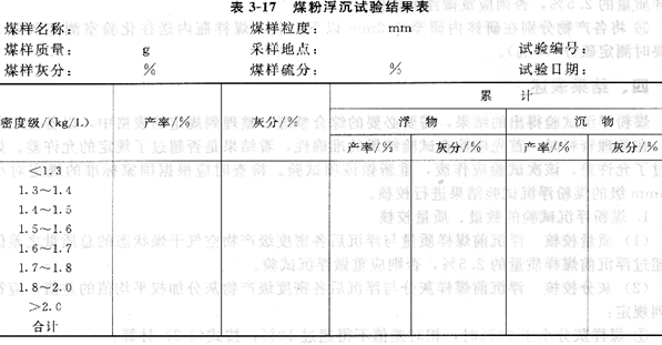 如果试验结果均符合上述数量、质量要求,即可将试验结果填人原始记录表3―16中,并计算、填写煤粉浮沉试验结果表3-17。
