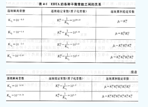 最后一级累积稳定常数胁又称为稳定常数。EDTA的各种平衡常数之间的关系见表。