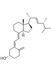 | 性 状: | 白色棱柱状结晶。无臭味。无味。在高真空中(0.08Pa)) 升华而不分解。不被毛地黄皂苷沉淀(不同于麦角甾醇)。在任何情况下对光都敏感,在空气中数日就氧化。低温贮存则氧化缓慢。在丙二醇、玉米油或各种硝基苯甲酸酯中稳定。7℃时0.0695g溶于1ml丙酮,溶于一般有机溶剂,微溶于植物油,不溶于水。熔点 115~118℃。比旋光 度[α]20D+102.5°(乙醇中)、+52°(氯仿中),[α]25D+82.6°(c=3,丙酮中)。最大吸收波长(己烷中) 264.5nm(獷1%1cm 458.9±7 |