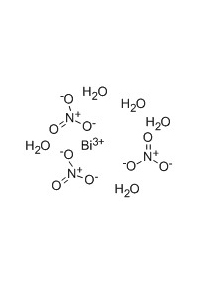 | 性 状: | 无色有光泽结晶。有硝酸气味。易吸湿。呈酸性反应。于80℃失去全部结晶水。溶于含有硝酸的水中。在水中分解成次硝酸铋。溶于甘油、丙酮、稀酸(包括乙酸),几乎不溶于乙醇和乙酸乙酯。相对密度2.83。熔点30℃(分解)。最小致死量(小鼠,腹腔)2500mG/kG。有氧化性,与有机物摩擦或撞击,能引起燃烧。有刺激性。 |